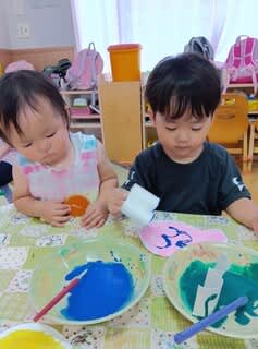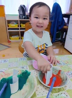 今まで触ることが少なかった絵の具や、筆を使いながら