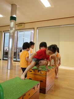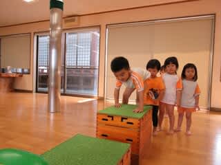 元気にジャンプしてみたり、そーっと渡ってみたり…と様々で、参加する子どもたちにとっても、見守る保育士にとってもドキドキ感、安堵感、達成感など様々な気持ちが味わえる時間です☆彡