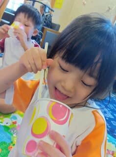 それぞれ好きなものを選んで、遊んだり、頬張ったりしていた子どもたちでした(^^)