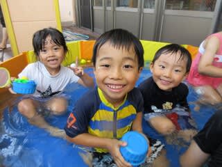 子どもたちが楽しみにしていた水遊びは、毎回大賑わいです!