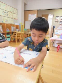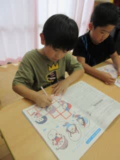 5歳児さんは、教材のワークに取り組みました。
