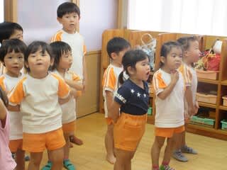 おはじまりの様子です(*^^*)♩神様へ挨拶したり、お歌を歌ったりと子ども達の元気のよい声が