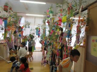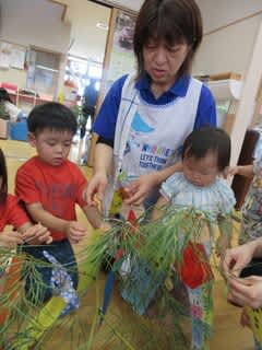 7月7日、七夕の日に向けて笹竹に飾りをつけました
