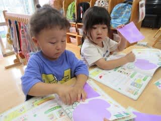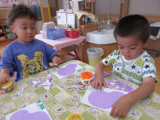 子どもたちが取り組んでいるのは、教材の「紫陽花の製作」