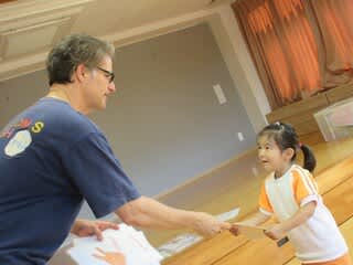 カードをもらうことができると、にこにこで先生のもとへ行き、