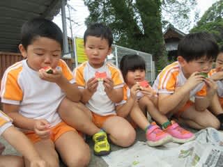 力を合わせて割ったすいか!!みんなで美味しく頂きました