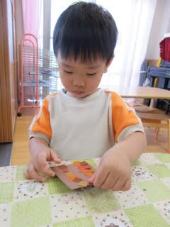 「ワン カード」「スリー カード」などゲットできた枚数を英語で伝えることができるようになってきた3歳児さんです