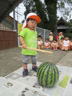 その後3、4、5歳児さんがしっかり割ってくれました!