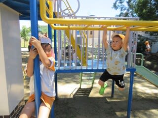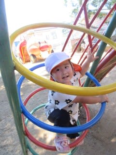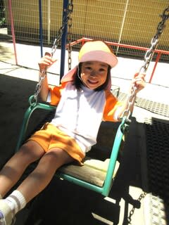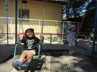 大型遊具では、ぶらんこやうんてい、すべり台などで思い思いに遊んでいます。