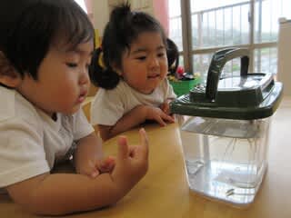 小さなお魚に興味津々で覗く、子どもたちでした(*´▽`*)