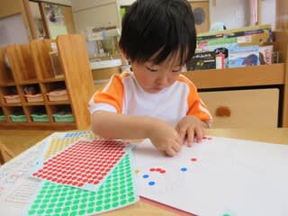 年齢に合わせて、丸や四角のシールを貼っていきます。