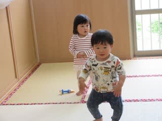 音楽が流れだすと、脚を元気に曲げ伸ばししながら、リズミカルに踊りだす1歳児さん(^^)