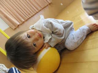 沢山遊んで疲れたのか、「おやすみ~★」とボールを枕にして眠る姿も!!