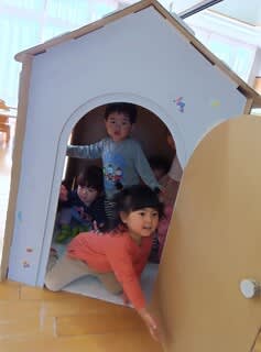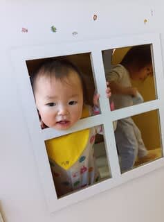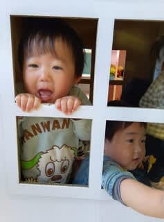 0歳児さんの保育室に持っていくと、家の中に入って窓から可愛いお顔を出してくれました