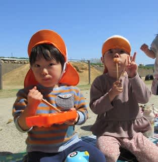 天気も良かったので、園庭ニートを広げて遠足気分で食べました。