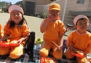 ポカポカ春の光を浴びながらのお弁当は、子どもたちも大喜び!