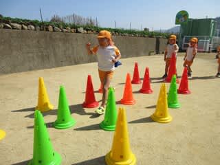 逃げる、取るだけではなくコーンにぶつからないように体を動かすことが大切です。