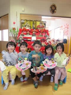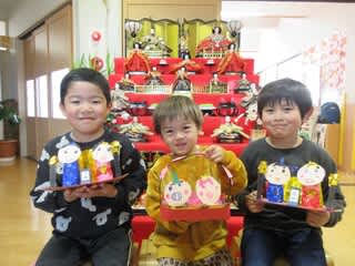 園では、子どもたちが作った可愛らしい雛人形が出来ています