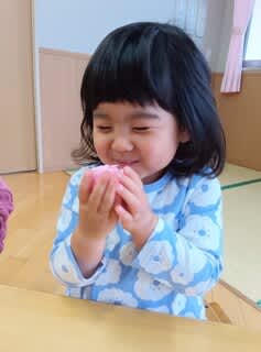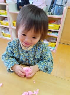 遊んでいるうちに、色も混ざり、きれいな小麦粉粘土が完成しました