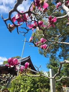 境内にある「紫木蓮」。少し前までは蕾でしたが、次々と開花しています❁