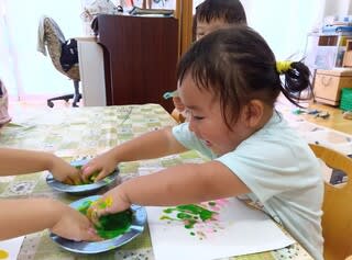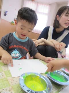 指先でちょんんちょんとつけたり、線を描いたりとそれぞれの子どもたちのやり方があり、