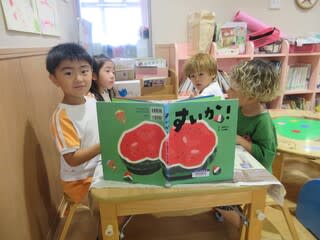 先日のスイカ割りを思い出したり、絵本の見たりしながら会話も弾んでいました(^^♪