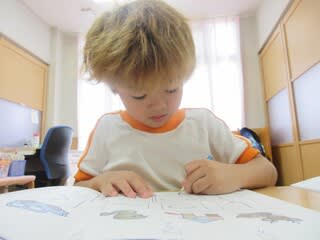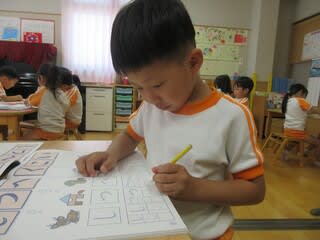 集中し、教材ワークに取り組む5歳児さんの様子でした(*^^*)