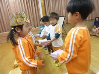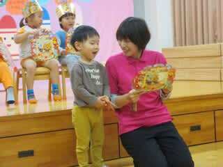 2月の誕生会がありました(^^♪名前を呼ばれると笑顔で前へ。