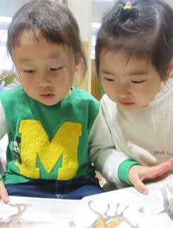 1冊の絵本を言葉を交わしながら見ている姿は、とても可愛いです(^^♪