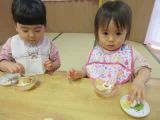 0・1歳児もトッピングをやってみました♪
