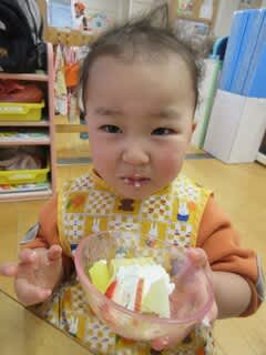2歳児クラスが子どもクッキングを行いました☆