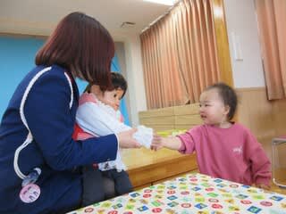0歳児のお友だちも「まんま。まんま。」と声を出しながら、楽しく参加してくれました♩