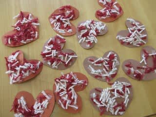 もうすぐバレンタインデー🍫なので、早速ハートの画用紙にデコレーションしてみました