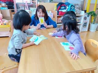 保育士が出す色と同じものをタッチ!!