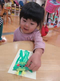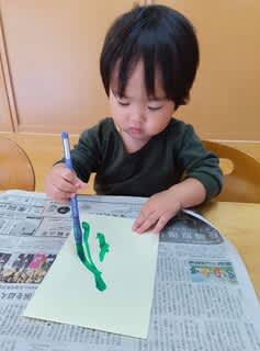 「びよーん」と言いながら筆を高ーく伸ばすように描きます。