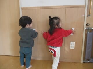 0歳児のお友だちも見よう見まねで、壁を拭いてくれていました(^・^)
