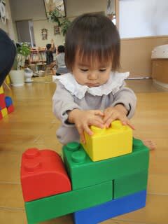 お友だちの姿を見て、遊び方を学び、集中して考えながら遊んでいます。