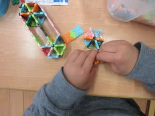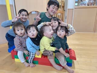 先日は大型ブロックで乗り物を作って、0・1歳児を乗り物に招待して優しく遊んであげていました。
