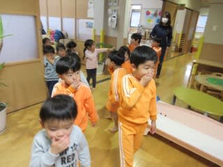 先生のお話をよく聞いて、煙を吸わないように避難します。