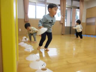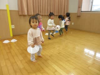 1・2歳児さんは、白と青のマーカーを使ってルールのある遊びに挑戦してみました。