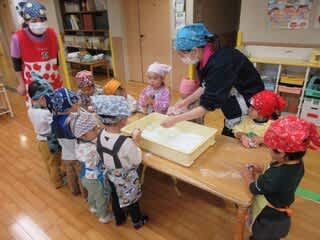 それぞれが興味をもちながら賑やかにおもちを丸めたり試食したり・・・♡