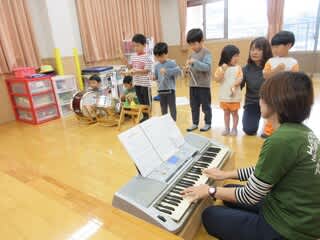 いろんな楽器に触れたり、音を感じたりしながら、楽しく取り組んでいます(^^♪