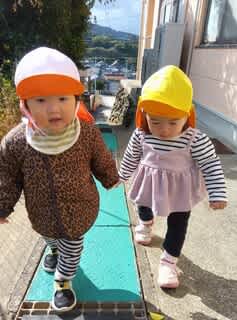 天気がよかったので、0歳児さんは、初めて園周辺をお散歩してきました。