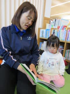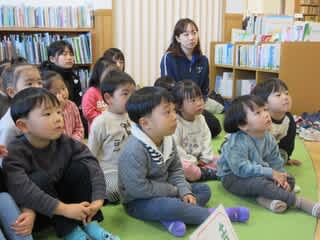 紙芝居や大型絵本を見たり、実際に絵本を手に取って物語を楽しんだり、いろんなお話に親しむ時間となりました。