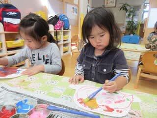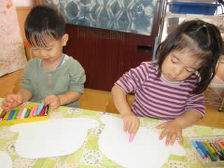 今回は、白い大きな紙に線を描いたり、輪を描いたり・・・