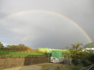 雨上がりの空には、きれいな大きな虹がかかっていました!