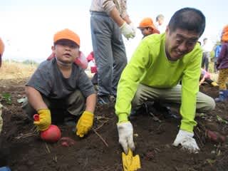 あけぼの学園の利用者の方と芋ほりを通して、交流を行いました。