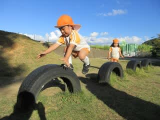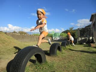 こちらは、タイヤ飛びの最中でした(^^)お兄ちゃんに続け~と挑戦です。