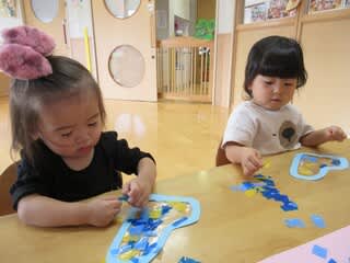 1・2歳児が夏の間に作っておいた食べ物の製作を