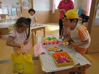 みんなに喜んで貰おうと、お店屋さんんごっこを開催しました☆